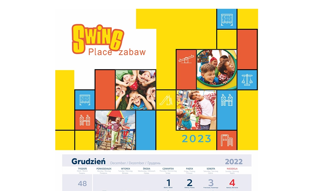 Stworzyliśmy piękny kalendarz trójdzielny na ścianę, który nadzwyczajnie uwydatnia wizerunek firmy. Został on zrobiony z dbałością o najdrobniejsze elementy, dzięki czemu skutecznie przyciąga wzrok i zachwyca ponadprzeciętną estetyką. Stworzenie projektu do kalendarza reklamowego zostało wykonane przez prawdziwych fachowców, w efekcie czego kalendarz jest kombinacją pięknego designu z imponującą praktycznością. Grafika kalendarza trójdzielnego - absolutnie najwyższa jakość Opracowanie graficzne kalendarza reklamowego trójdzielnego pozwala na skuteczną reklamę marki przez zawarcie charakterystycznych barw firmowych. Grafika została wybrana w taki sposób, aby była spójna z branżą firmy, a zarazem przyciągała uwagę potencjalnych klientów. Projekt graficzny firmowego kalendarza trójdzielnego został bardzo dobrze zaplanowany, dzięki czemu produkt ten jest skuteczną reklamą przez cały rok. Przy tworzeniu materiału promocyjnego wszystkie zdjęcia oraz grafiki były dobierane ze szczególną dbałością i dokładnością, co znaczy, że efekt końcowy jest iście imponujący. Kalendarz dla firmy trójdzielny spójny z wizerunkiem marki - produkt najwyższej jakości Zrobiony przez nas kalendarz dzielony trójdzielny zachwyca przede wszystkim pięknym projektem i ponadprzeciętną estetyką wykonania, niemniej jednak jego mocną stroną jest również unikalna solidność i długa trwałość wykonania. Jest on niezwykle odporny na wszelkie uszkodzenia, ponieważ w procesie produkcyjnym wykorzystano wyłącznie najlepsze materiały. Dzięki temu firmowy kalendarz trójdzielny zawieszony na ścianie jest fantastyczną formą promocji i skutecznie ozdabia biuro, nadając mu elegancji oraz szykowności.